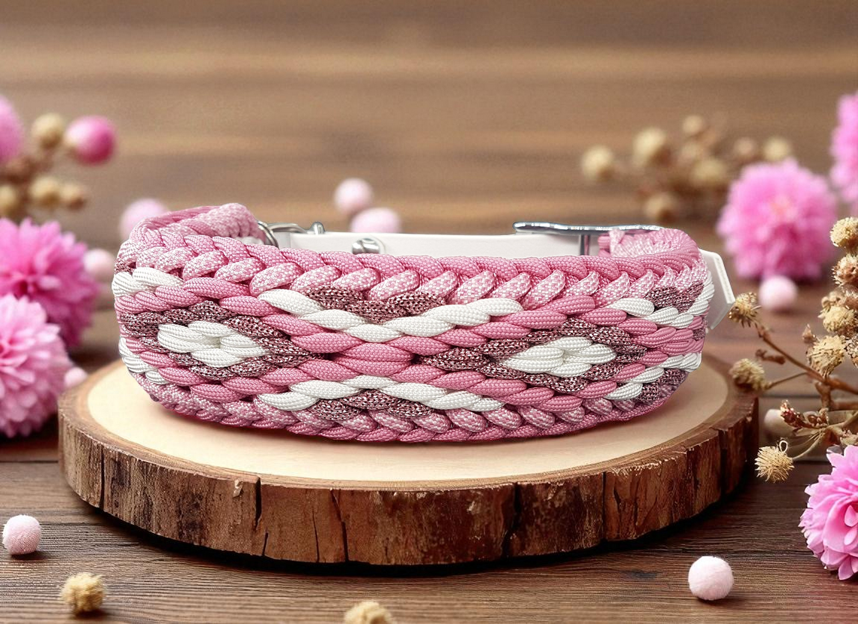 Die Farbkombination aus Weiß, Lavender Pink, Glitzer Pink sowie Weiß / Lavender Pink Diamond verleiht dem Halsband eine helle, freundliche und zugleich verspielte Optik. Die rostfreien Edelstahlbeschläge fügen sich dezent in das Design ein und eignen sich ideal für den täglichen Einsatz durch ihre Stabilität und Langlebigkeit.