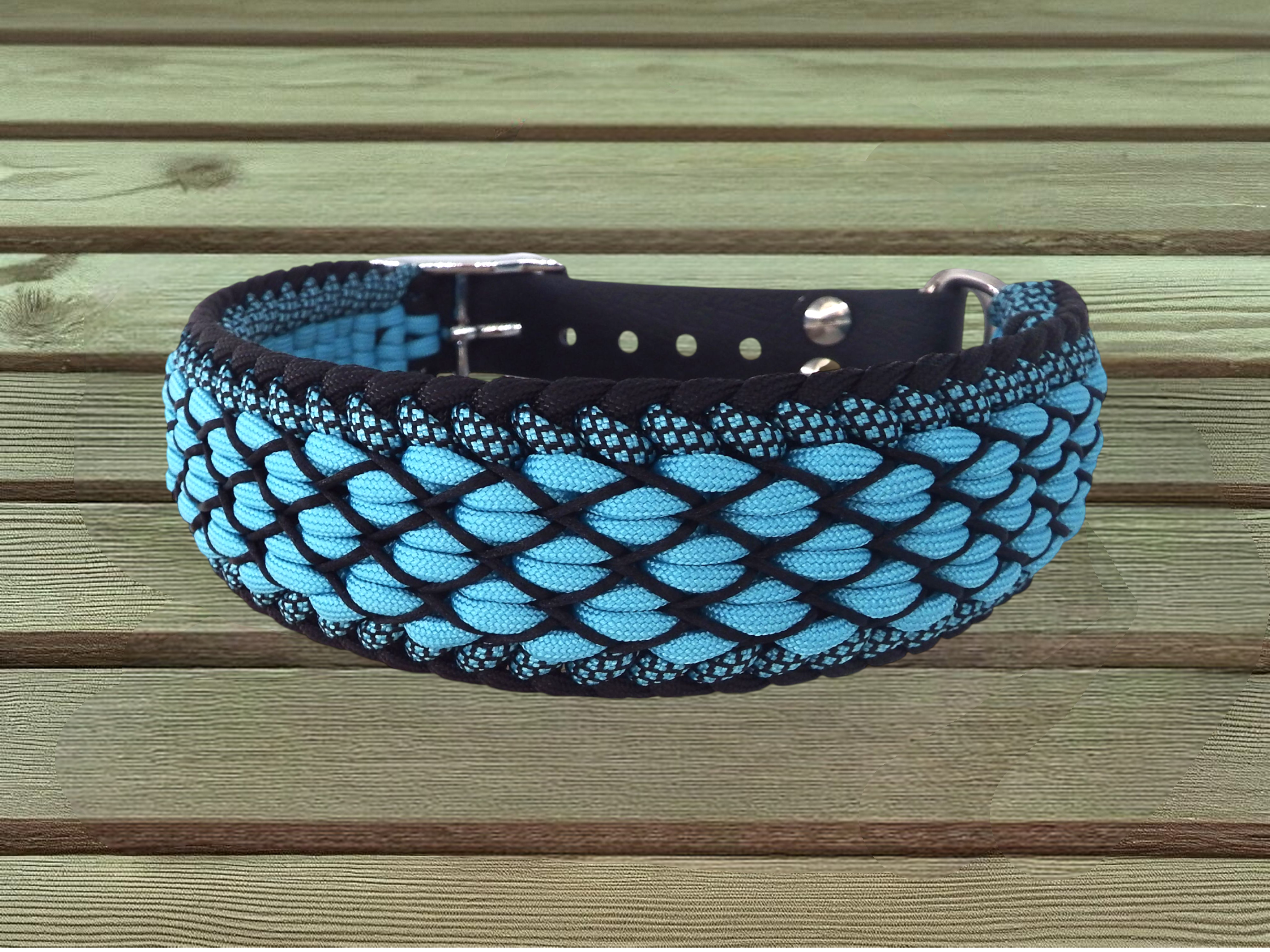 Das Halsband „Spider“ überzeugt durch eine markante Flechttechnik und ein kraftvolles, kontrastreiches Design. Mit einer Breite von ca. 5 cm und einer Dicke von ca. 1 cm wirkt das Halsband präsent und eignet sich ideal für Hunde, bei denen ein breiteres Halsband gewünscht ist.