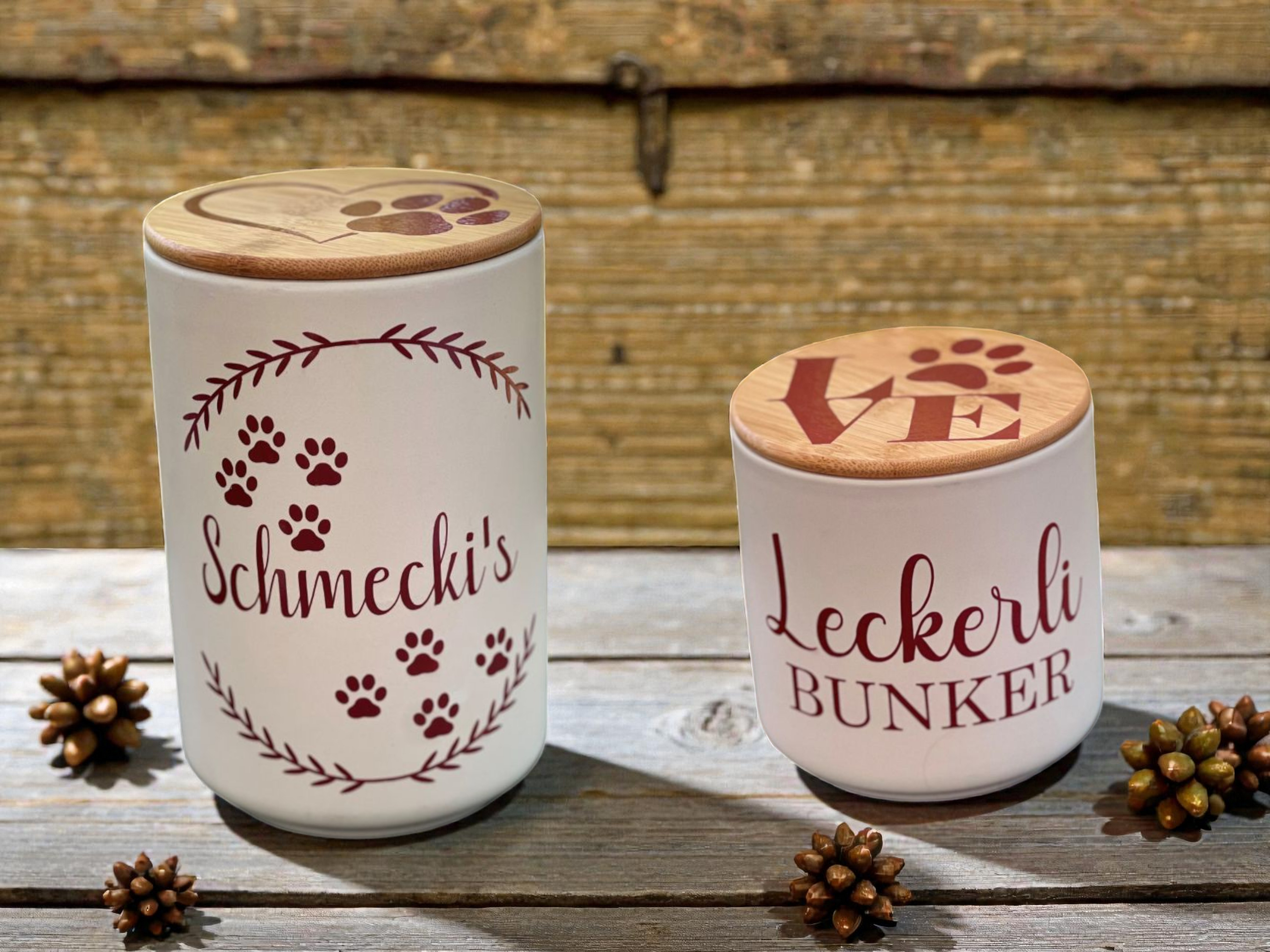 Dank der Kombination aus langlebigen Materialien und individueller Gestaltung werden die Leckerligläser nicht nur zu einem funktionalen Alltagshelfer, sondern auch zu einem dekorativen Blickfang – ob in der Küche, im Regal oder im Hundehaushalt.