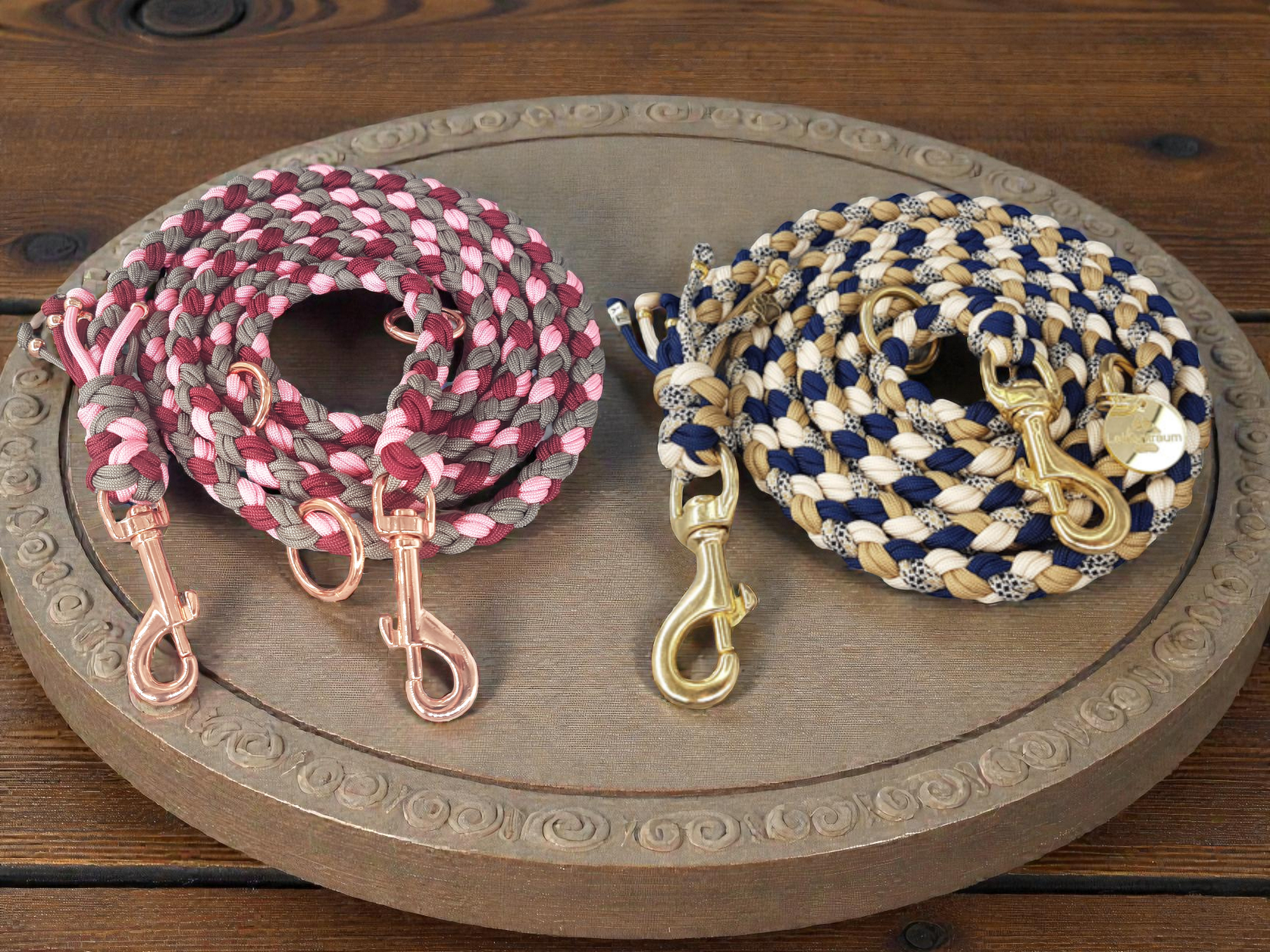 Ob rund oder flach geflochten, einfarbig oder mehrfarbig: Jede Leine ist ein Unikat, das Sie individuell auf Ihren Hund abstimmen können. Perfekt kombinierbar mit unseren Paracord-Halsbändern – für ein harmonisches Set mit Wiedererkennungswert.