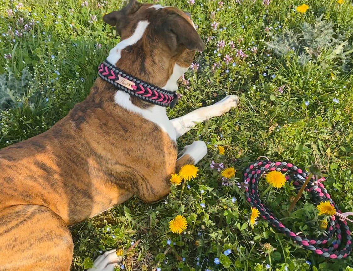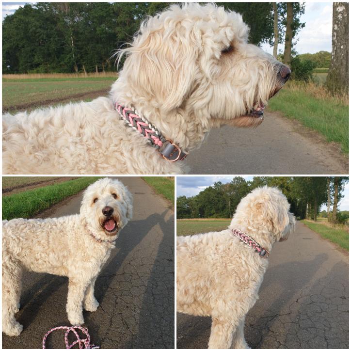 Alle Bilder stammen von Kundinnen und Kunden, die ihre Erfahrungen und Lieblingsstücke mit uns teilen. Ob Halsband, Leine, Loop oder Halstuch – jedes Foto erzählt eine kleine Geschichte und zeigt, wie individuell unsere Produkte wirken.