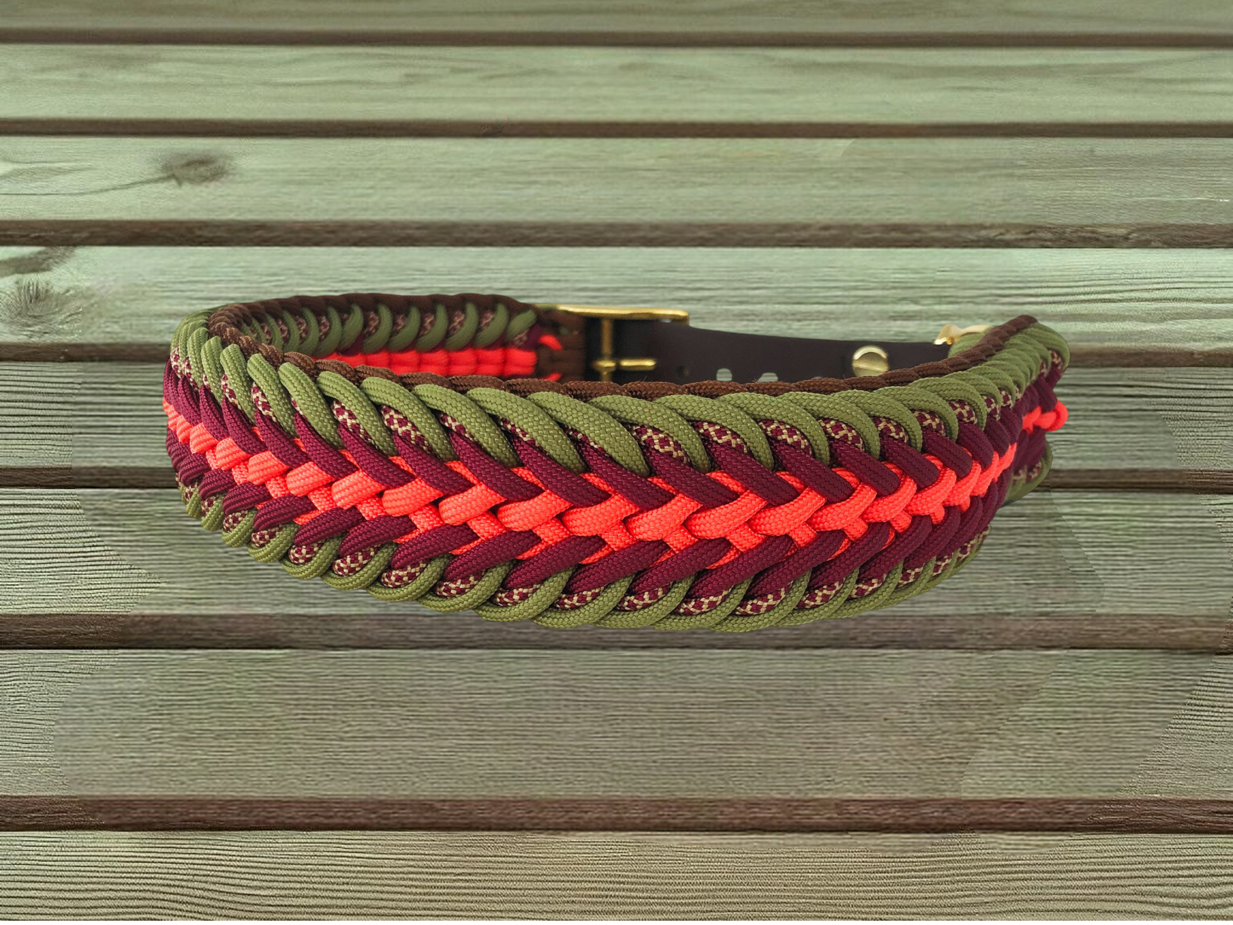 Das Halsband- & Leinen-Set „Moonshine Autumn Flame“ vereint kraftvolle Herbstfarben mit hochwertiger Handarbeit und zuverlässiger Alltagstauglichkeit. Das Set besteht aus dem Halsband „Moonshine“ sowie der passenden runden Hundeleine „Autumn Flame“ – perfekt aufeinander abgestimmt in Design und Material.
