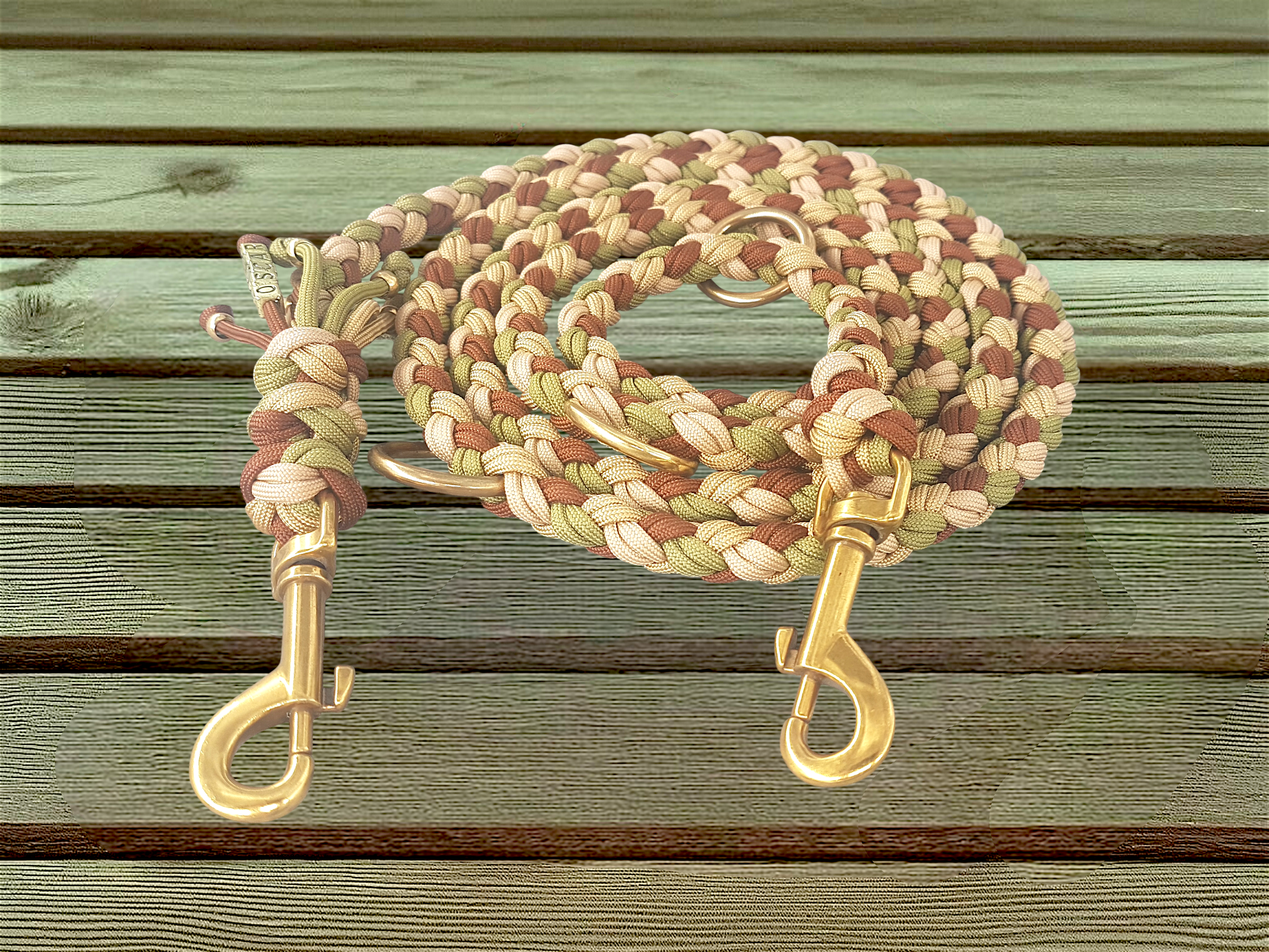 Die runde Paracord-Hundeleine „Woodland Gold“ steht für natürliche Eleganz und zuverlässige Alltagstauglichkeit. Mit einer Länge von ca. 2 Metern und der 3-fachen Verstellbarkeit lässt sie sich flexibel an unterschiedliche Situationen anpassen – vom entspannten Spaziergang bis zur sicheren, kurzen Führung.